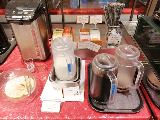 アイスコーヒーやミルク、ティーバッグが置かれていました。
